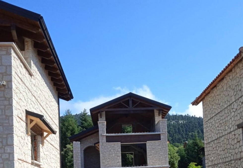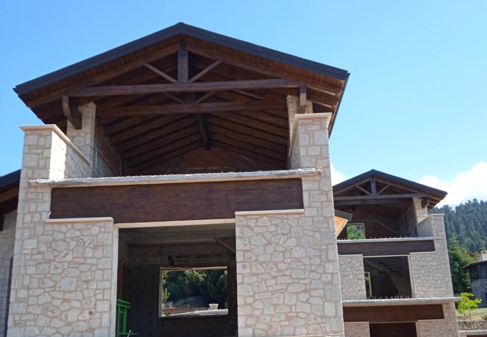 Παραδοσιακές κατοικίες στην Αράχωβα Βοιωτίας σε απόλυτη αρμονία με το φυσικό περιβάλλον. Οι μεταλλικές στέγες Gerard® ολοκληρώνουν το εξαίσιο αποτέλεσμα ταιριάζοντας αρμονικά με τα υπόλοιπα φυσικά υλικά, παρέχοντας ταυτόχρονα αντοχή στις δύσκολες καιρικές συνθήκες του χειμώνα.