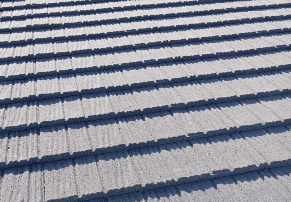 Η επιφάνεια της μονόριχτης στέγης της κατοικίας, επενδύθηκε με μεταλλικά κεραμίδια και εξαρτήματα Gerard® δίνοντας έναν μοντέρνο και ταυτόχρονα διαχρονικό χαρακτήρα στην κατασκευή.