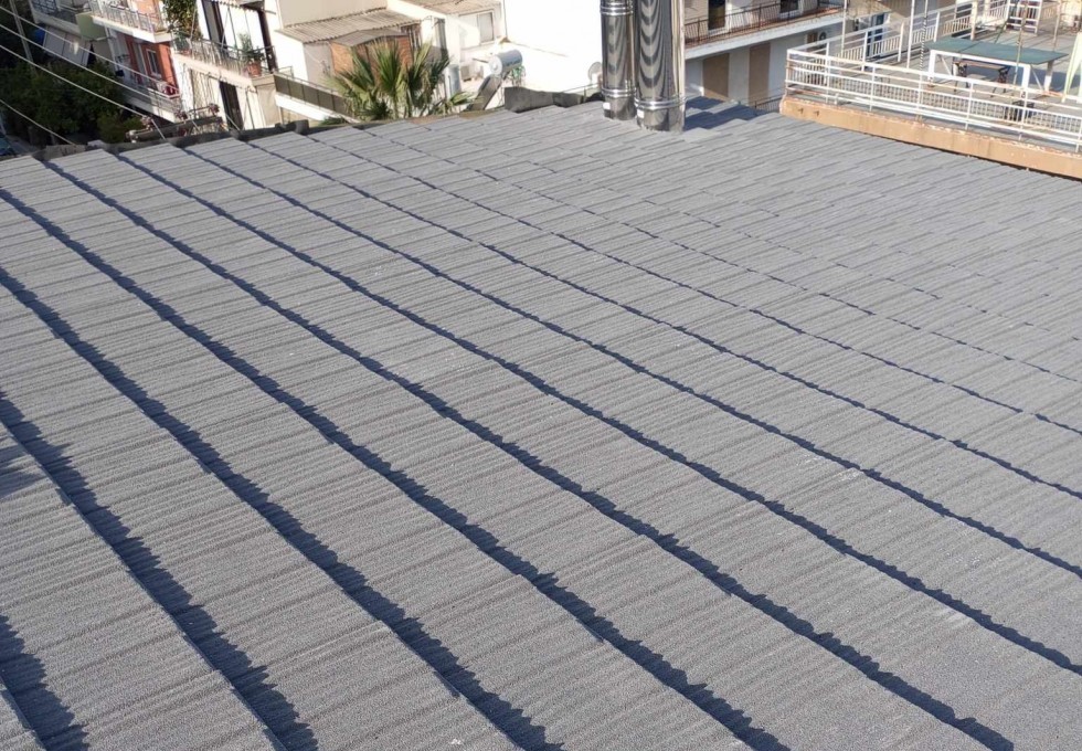 Η επιφάνεια της μονόριχτης στέγης της κατοικίας, επενδύθηκε με μεταλλικά κεραμίδια και εξαρτήματα Gerard® δίνοντας έναν μοντέρνο και ταυτόχρονα διαχρονικό χαρακτήρα στην κατασκευή.